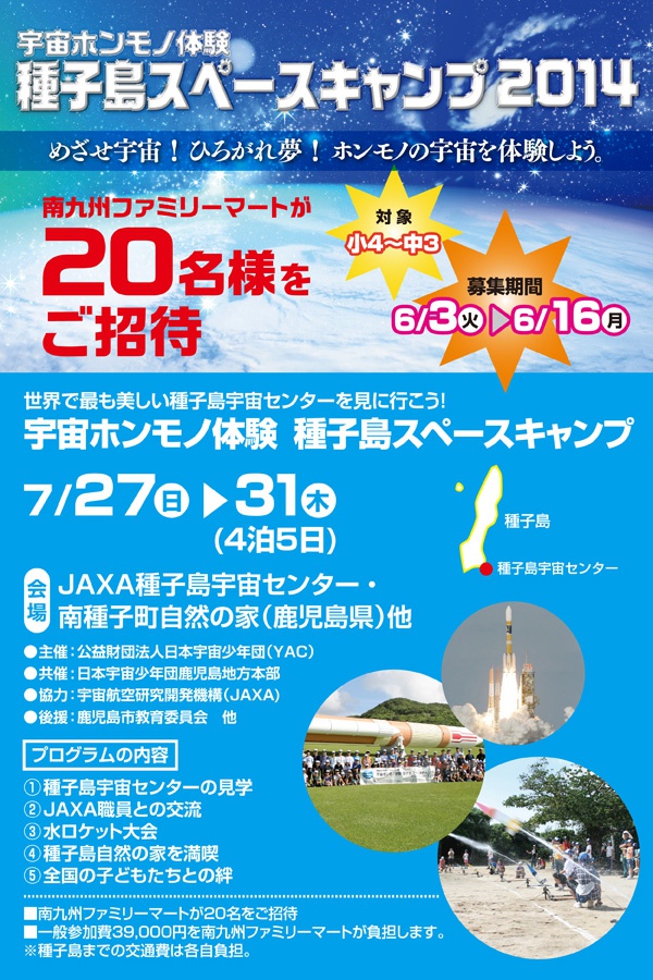 宇宙ホンモノ体験「種子島スペースキャンプ2014」南九州ファミリーマートが20名様をご招待!