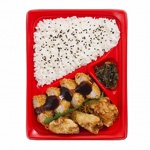 | 【内 容】 | 鹿児島県産黒豚の一口カツとメンチカツ、鹿児島県産鶏の唐揚げに、ご飯は鹿児島県の新ブランド米のあきほなみを使用した弁当です。付け合せには鹿児島県産高菜の油炒めを添えました。 |