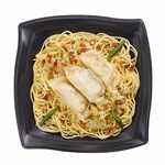 | 【内 容】 | ぺペロンチーノソース味のスパゲッティに、鹿児島県産黒豚を使用した揚げ餃子を添えました。餃子のタレを別添えで付けました。 |