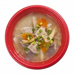 | 【内 容】 | 鹿児島県産黒豚モモ肉と大根・人参・ごぼう・油揚げ・こんにゃく・万能ネギが入った豚汁です。味噌は鹿児島産を使用しコクのある一品に仕立てました。 |