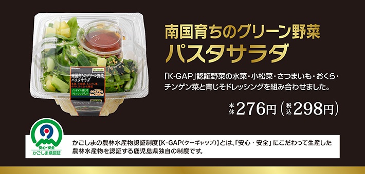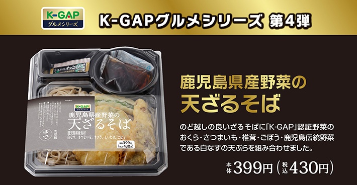 K-GAPグルメシリーズ 第4弾!「鹿児島県産野菜の天ざるそば」「鹿児島伝統野菜白なすのカレーライス」「南国育ちのグリーン野菜 パスタサラダ」