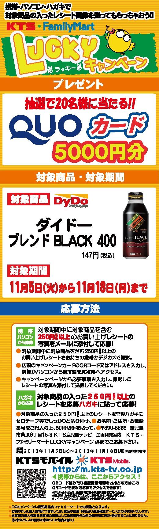 KTS・FamilyMart Luckyキャンペーン QUOカード5,000円分を抽選で20名様にプレゼント!