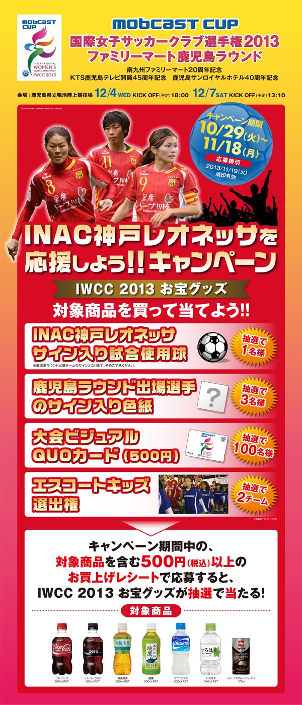 mobcast cup 国際女子サッカークラブ選手権2013 ファミリーマート鹿児島ラウンド「INAC神戸レオネッサを応援しよう!! キャンペーン」