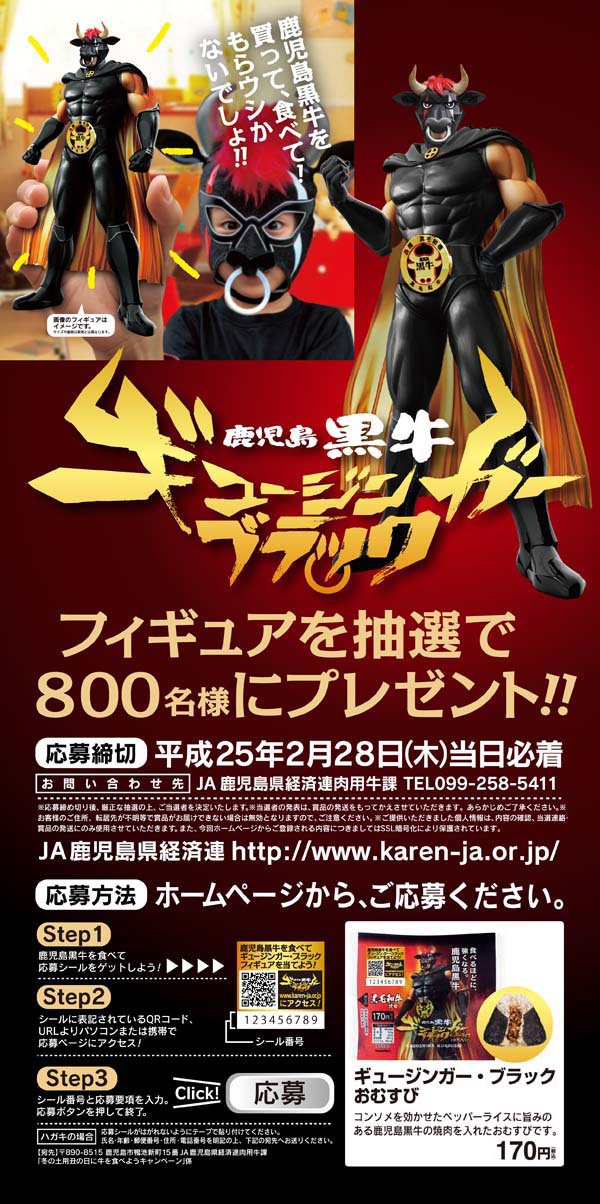 鹿児島黒牛ギュージンガー・ブラック フィギュアを抽選で800名様にプレゼント!