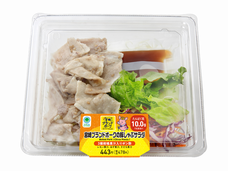 今週の新商品 ※ページ内の商品にはリニューアル・再販売の商品も含まれます。 宮崎ブランドポークの豚しゃぶサラダ 【日本のひなた宮崎県フェア】 三種類の柑橘果汁入りのポン酢で食べる、宮崎ブランドポークの豚しゃぶサラダです。 本体443円(税込478円)