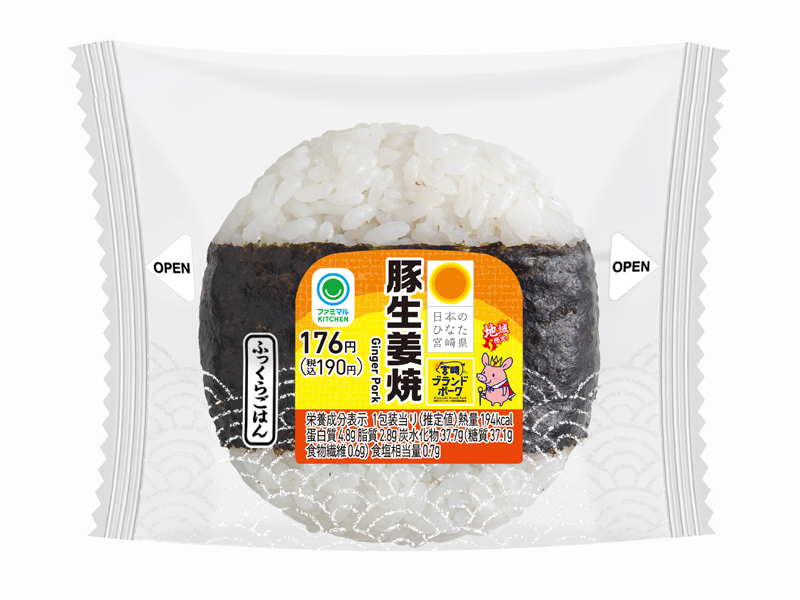 今週の新商品 ※ページ内の商品にはリニューアル・再販売の商品も含まれます。 直巻 豚生姜焼 【日本のひなた宮崎県フェア】 宮崎ブランドポークを使用した生姜焼きがごはんと相性抜群のおむすびです。 本体176円(税込190円)