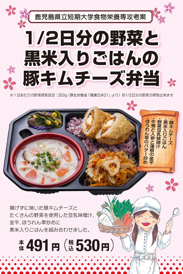 1/2日分の野菜と黒米入りごはんの豚キムチーズ弁当