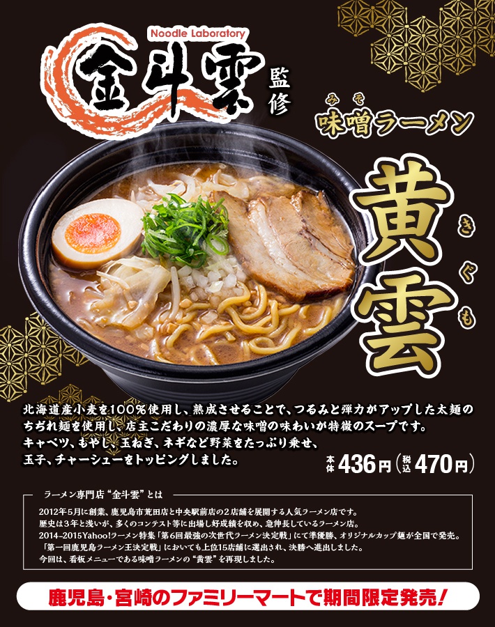 金斗雲監修 味噌ラーメン「黄雲」期間限定発売
