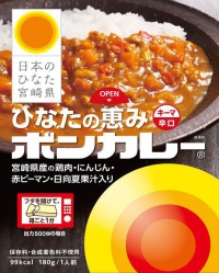宮崎県(県庁所在地:宮崎県宮崎市、宮崎県知事:河野俊嗣)、大塚食品株式会社(本社:大阪市中央区、代表取締役社長:戸部貞信、以下大塚食品)は、ボンカレーとして初のご当地コラボカレー『ひなたの恵みボンカレー』(320円税別)を、本商品の開発に参画した株式会社南九州ファミリーマート(本社:鹿児島県鹿児島市、代表取締役社長:久保裕之、以下南九州ファミリーマート)が運営する宮崎県及び鹿児島県内のファミリーマート店舗385店と、新宿みやざき館KONNE(所在地:東京都渋谷区)などで、7月5日(火)から先行発売いたします。なお、7月18日(月)からは宮崎県を中心に一般小売店での販売も予定しております。