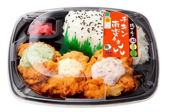 | 【内 容】 | お弁当の定番商品である宮崎名物の「チキン南蛮」を3種類のソースで展開。宮崎県産鶏肉のチキン南蛮に、通常のタルタルソースと、梅風味・バジル風味の3種類のタルタルソースをトッピングしました。 |