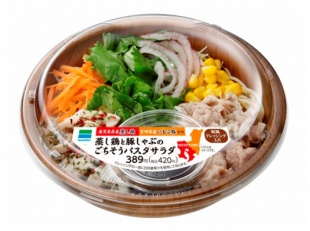 | 【商品名】 | 蒸し鶏と豚しゃぶのごちそうパスタサラダ |