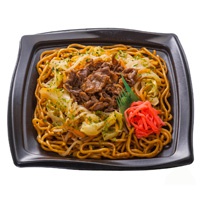 | 【内 容】 | 鹿児島県産黒毛和牛のバラ肉を焼きそばソースで和えて、野菜炒めと一緒に焼そばの上にトッピングしました。 |
