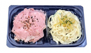 | 【内 容】 | 左側は、鹿児島県産のさつまいもを混ぜ合わせたポテトサラダに鹿児島県産のシュゼットハムを盛り付けています。右側は、スパゲティに宮崎県産日向夏果汁、宮崎県産切干大根、きゅうりを混ぜ合わせ、日向夏スライスを上に盛り付けました。 |