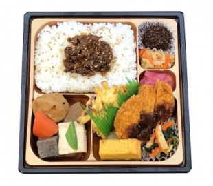 | 【内 容】 | 宮崎牛焼肉のたれ和え、宮崎県産切干大根煮、鹿児島黒豚のとんかつ、黒豚みそ、鹿児島県産さつま芋のがね天など様々なおかずを盛り合わせた幕の内弁当です。 |