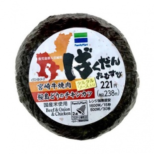 | 【商品名】 | ばくだんおむすび(宮崎牛焼肉&桜島鶏チキンカツ) |