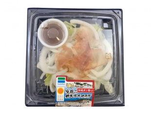 | 【内 容】 | 宮崎県産の新玉ねぎ「空飛ぶ新玉ねぎ」を使用し、今しか味わえない旬の玉ねぎの甘みとフレッシュ感を打ち出したサラダです。 玉ねぎ、レタス、花かつおを盛り付け、ドレッシングには、日向夏果汁を使用した和風ポン酢をあわせました。3週間期間限定。 |