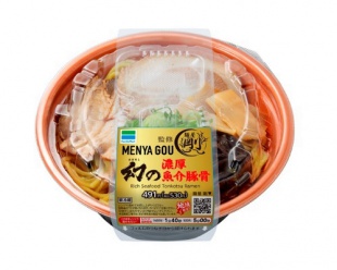 | 【内 容】 | のど越しのよい麺と、魚介の旨みたっぷりの濃厚スープを組み合わせ、具材には、チャーシュー、ねぎ、メンマ、きくらげ、鰹節の粉末をトッピング、濃厚な味わいのラーメンに仕立てました。 |