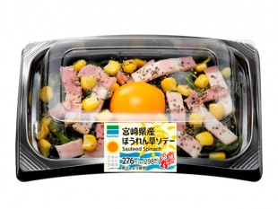 | 【内 容】 | 宮崎県産のほうれん草をコンソメで味付けし、ベーコン・コーン・卵黄ソースをトッピングしました。 |