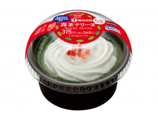 | 【内 容】 | 霧島高等学校の生徒さんとフードコーディネーターのコハシヒロミ先生の共同による商品です。霧島抹茶を使用したテリーヌに、霧島抹茶クリーム・ホイップクリーム・フリーズドライいちごをトッピング。アーモンドがアクセントの和洋折衷デザートです。 |