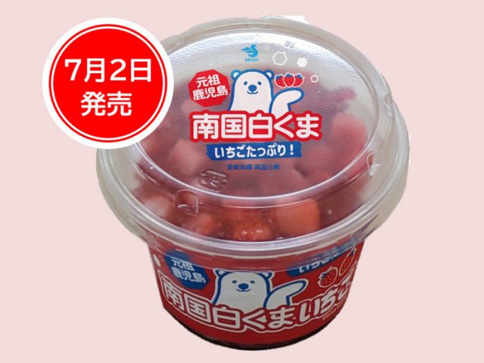 | 【内 容】 | セイカ食品でも大人気の「南国白くまDX」に、ダイス上にカットしたいちごをたっぷりトッピングしました。シャリシャリしたいちごと、甘酸っぱいいちごソースが練乳たっぷりの白くま氷と相性抜群! 鹿児島県・宮崎県のファミリーマートでは、全国発売に先駆けて、7月2日(火)より先行発売します。 |