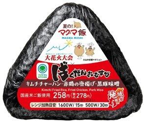 | 【商品名】 | 夏のマグマ飯 ばくだんおむすび (キムチチャーハン・赤鶏の唐揚げ・黒豚味噌) |