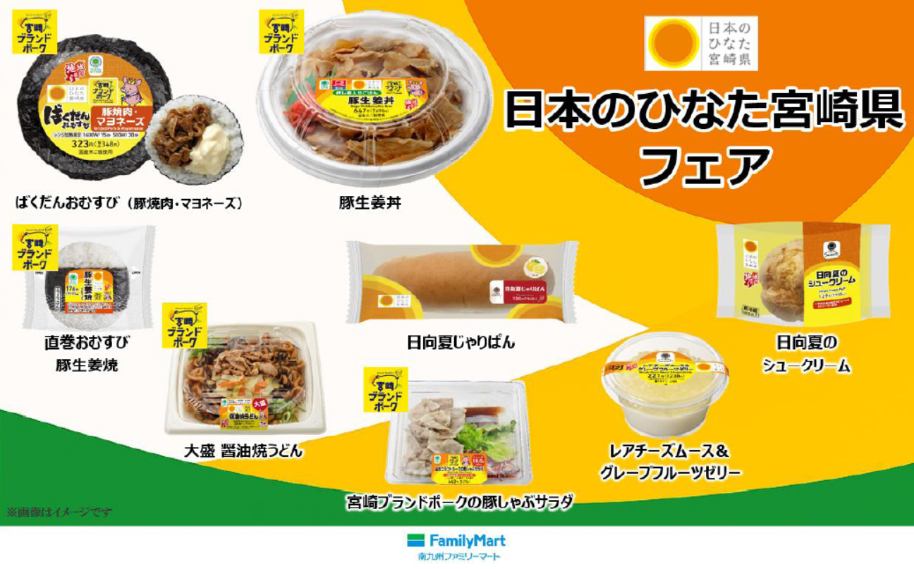 株式会社南九州ファミリーマート(本社:鹿児島県鹿児島市、代表取締役社長:飯塚隆)は、宮崎県産食材を使用した中食メニュー合計8種類を揃えた「日本のひなた宮崎県フェア」を、10月7日(火)から11月3日(月)までの約4週間、宮崎県・鹿児島県のファミリーマート392店舗にて期間限定で開催いたします。