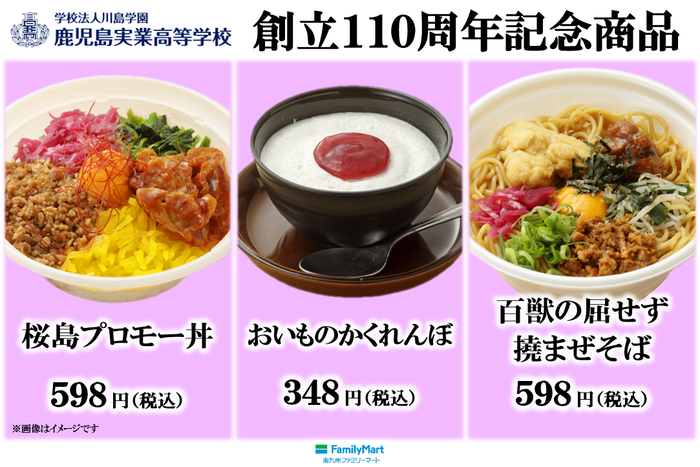 株式会社南九州ファミリーマート(本社:鹿児島県鹿児島市、代表取締役社長:飯塚隆)は、「学校法人川島学園 鹿児島実業高等学校」(所在地:鹿児島市五ヶ別府町、校長:渡辺浩二)の創立110周年を記念し、生徒さんが考案した鹿実愛がたっぷり詰まった3種類のメニューを、10月21日(火)から11月17日(月)までの約4週間、鹿児島県・宮崎県のファミリーマート392店舗にて発売いたします。また当商品につきましては、MBC南日本放送の鹿児島が舞台の地域エンターテインメントプログラム「てゲてゲ」とタイアップし、商品発売を盛り上げます。